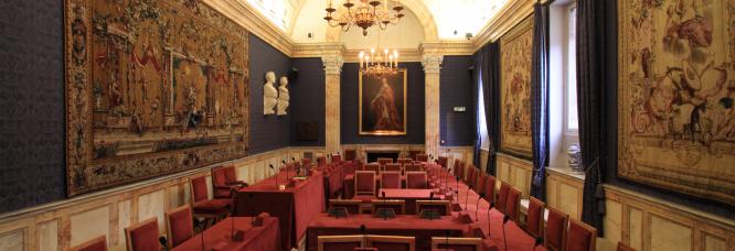 Elle est chargée de gérer les biens de la Compagnie : dotations, fondations, patrimoine mobilier et immobilier, portefeuille. À ce titre, le Secrétaire perpétuel est ordonnateur des dépenses et signe toutes les pièces comptables : appointements, prix, bourses, secours, subventions, travaux, impôts, assurances, contrats, actes d’achat, de ventes ou de locations intéressant le patrimoine.